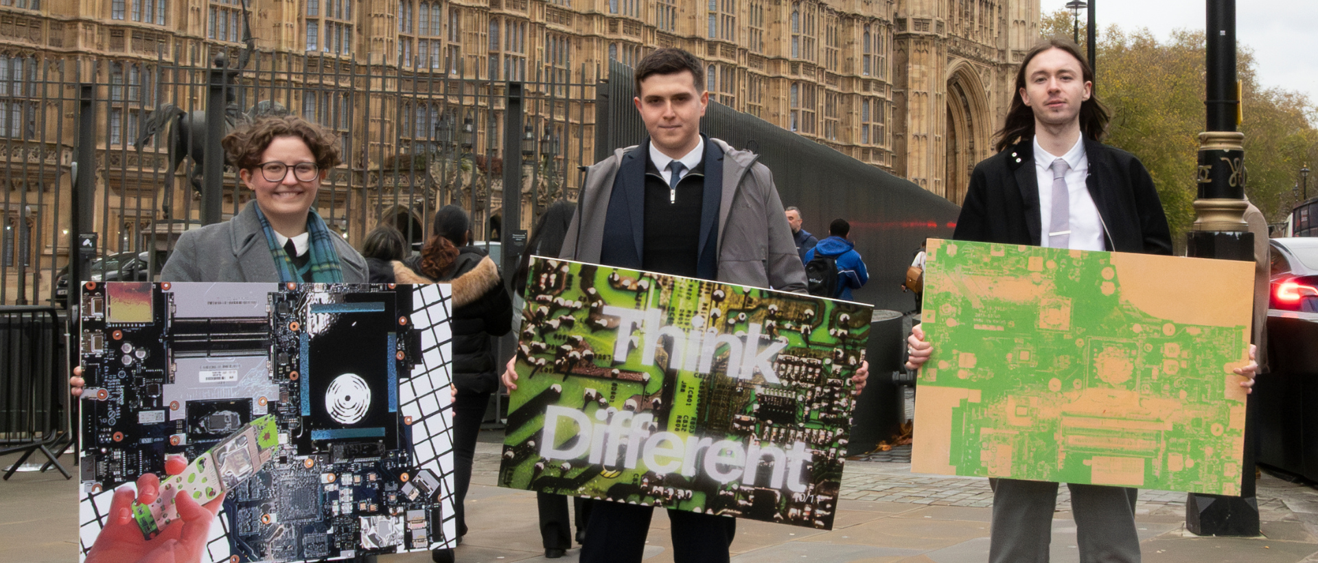 On Monday 28 November, Senior Lecturer Helen McGhie accompanied three recent BA (Hons) Photography graduates – Tom Holloway, Cain Newell and Marcus Grange (Class of 2025) – to the House of Commons, where they were invited to present their photographic work highlighting the growing issue of electronic waste (e-waste).